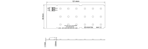 The module measures 49.5 × 121.4 mm and features 16 high-efficacy 3030 LEDs, delivering excellent brightness while maintaining cost efficiency. The evenly arranged LEDs ensure uniform light distribution and consistent color quality. At the rated current and Tp = 25 °C, the module achieves a luminous flux of approximately 2430 lm. It is a high-performance LED module engineered for demanding outdoor illumination, including street lights, tunnel lighting, and industrial area applications.