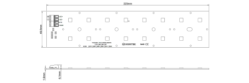 is a 49.5 × 223 mm outdoor LED module designed for high-efficacy lighting. Built with 16 Lumileds 5050 high-brightness LEDs, it delivers excellent luminous performance, color consistency, and reliability. At the rated current and Tp = 25 °C, the module achieves a luminous flux of approximately 4500 lm. Compact and durable, it’s ideal for street lights, tunnel lighting, and industrial illumination.