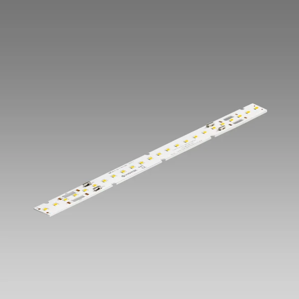 Designed for lighting applications that pursue high efficacy and low power consumption, this linear lighting module measures 280mm × 20mm and follows the Zhaga design standard, ensuring compatibility with various optical lenses and diffusers. It features 24 high-efficacy 2835 LEDs, delivering outstanding luminous performance with stable reliability and excellent color rendering. It widely used in panel lights, linear fixtures, and office lighting applications.